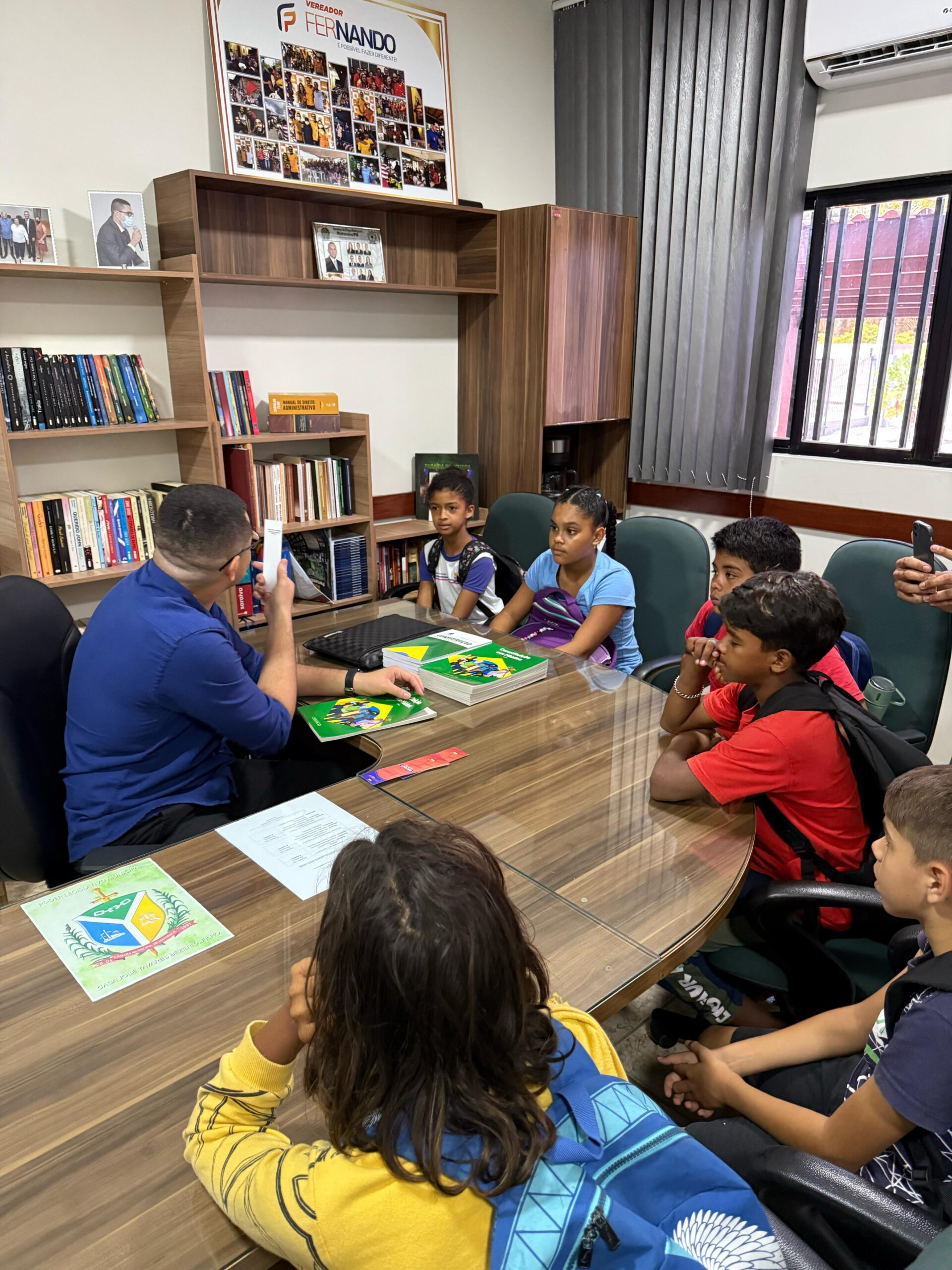 Como forma de incentivo ao conhecimento, o presidente Fernando Moura presenteou os alunos com exemplares da Constituição em Miúdos e entregou aos professores a Constituição Federal.