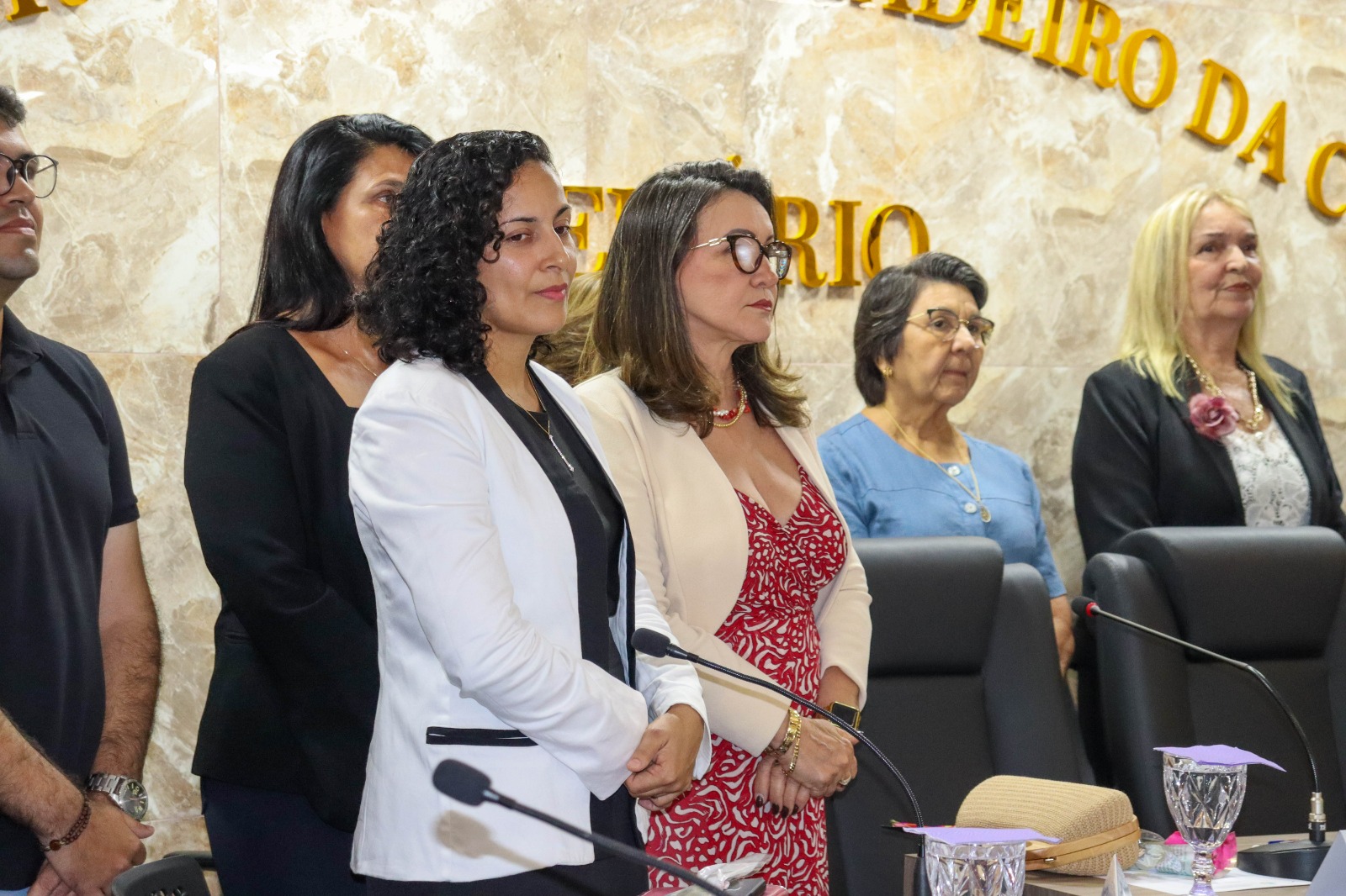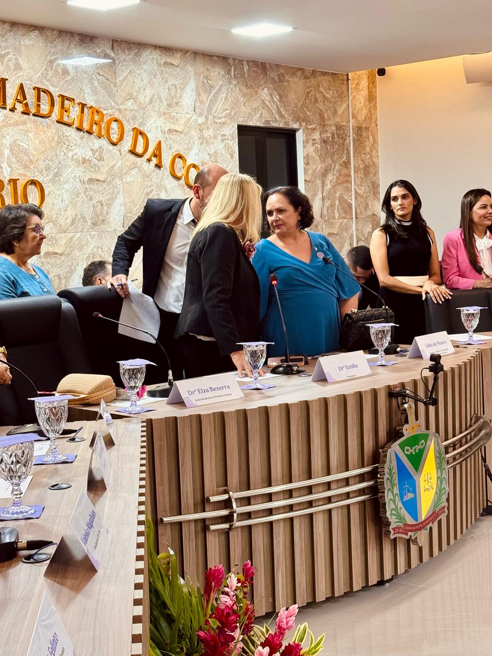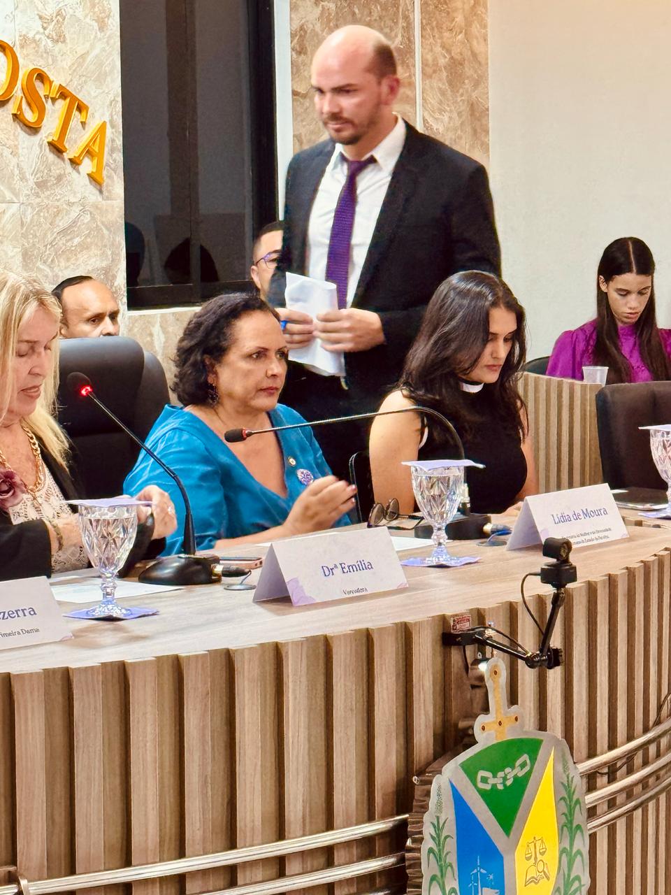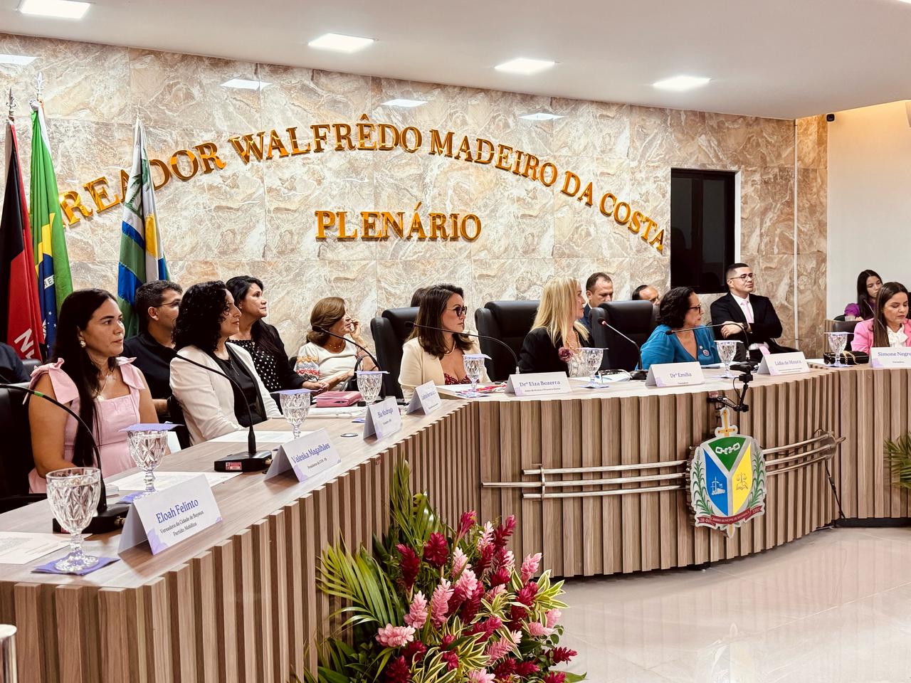 A sessão foi presidida pela vereadora Walterluzia Maria Emília Brandão Mendes e contou com a participação das vereadoras Rosemeure Miranda do Nascimento, Beatriz Marinheiro Nunes e Simone Silva de Negreiros Nascimento, que reafirmaram seu compromisso com a defesa dos direitos e da valorização das mulheres. Também prestigiaram o evento o Prefeito Constitucional Eymard de Araújo Pedrosa e o Vice-prefeito Antônio Isaías Bessa Filho, reforçando o engajamento da gestão municipal nessa causa essencial. Durante a solenidade, as autoridades presentes enfatizaram a necessidade contínua de políticas públicas que garantam respeito, igualdade e oportunidades para todas as mulheres.