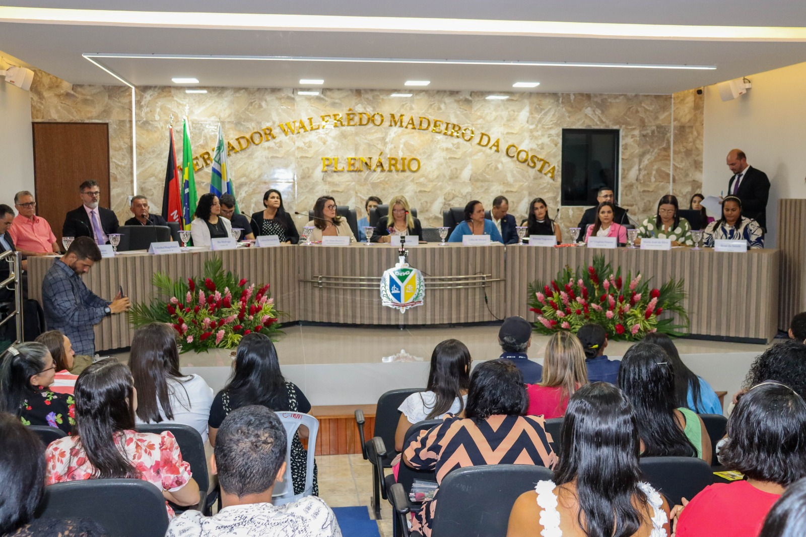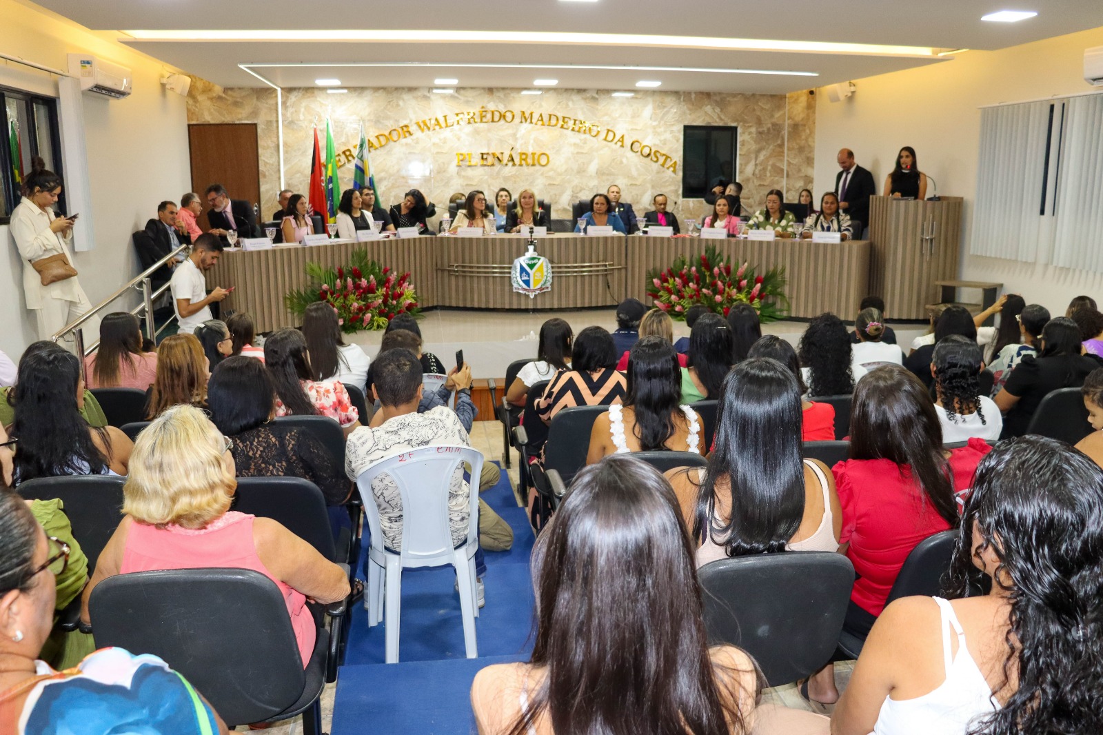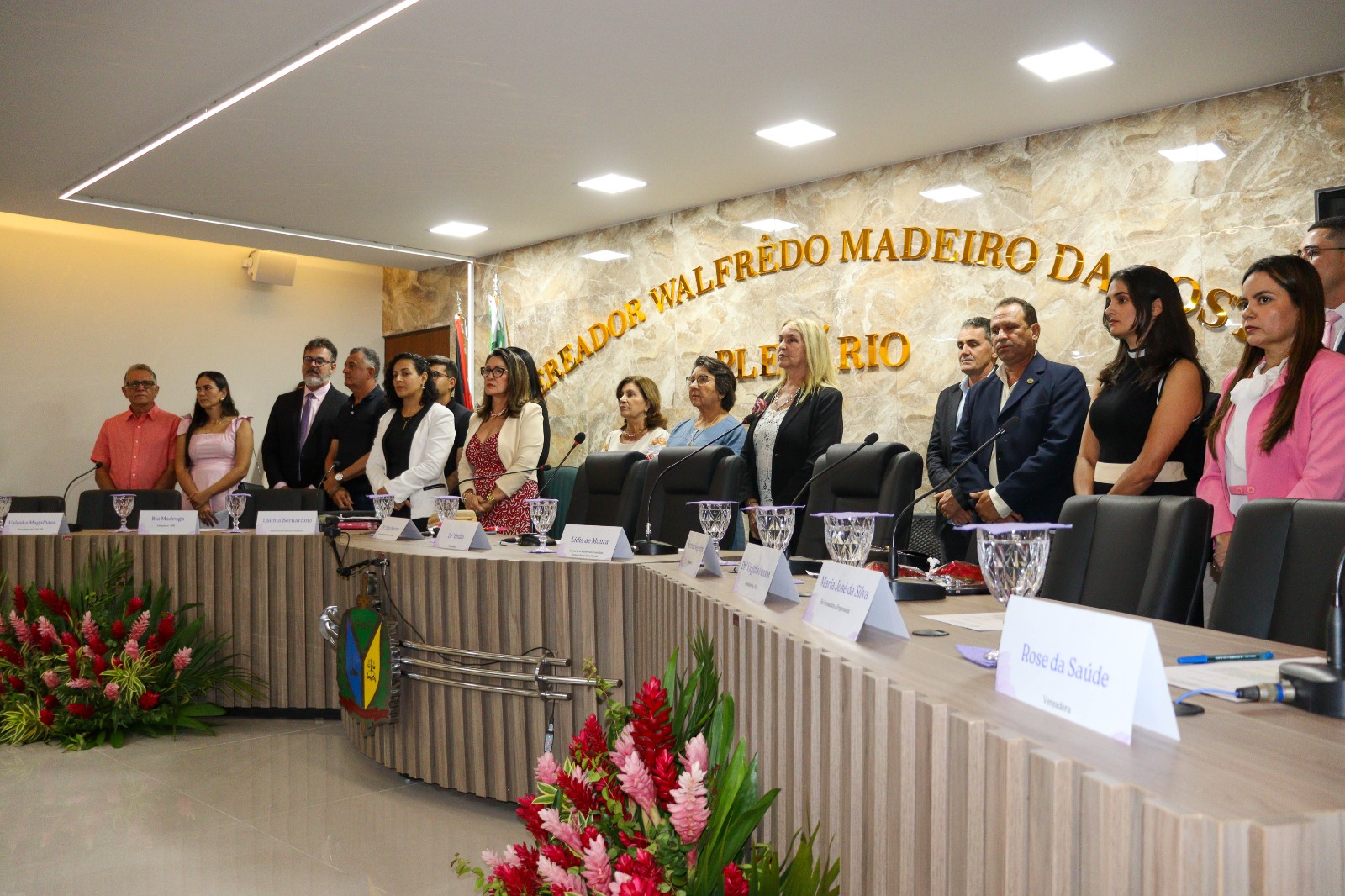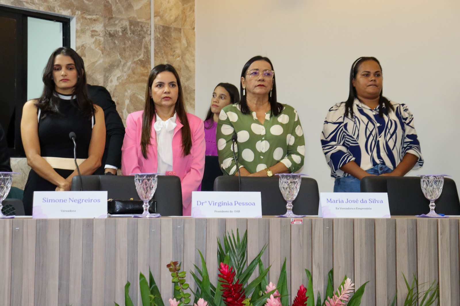 A sessão foi presidida pela vereadora Walterluzia Maria Emília Brandão Mendes e contou com a participação das vereadoras Rosemeure Miranda do Nascimento, Beatriz Marinheiro Nunes e Simone Silva de Negreiros Nascimento, que reafirmaram seu compromisso com a defesa dos direitos e da valorização das mulheres. Também prestigiaram o evento o Prefeito Constitucional Eymard de Araújo Pedrosa e o Vice-prefeito Antônio Isaías Bessa Filho, reforçando o engajamento da gestão municipal nessa causa essencial. Durante a solenidade, as autoridades presentes enfatizaram a necessidade contínua de políticas públicas que garantam respeito, igualdade e oportunidades para todas as mulheres.