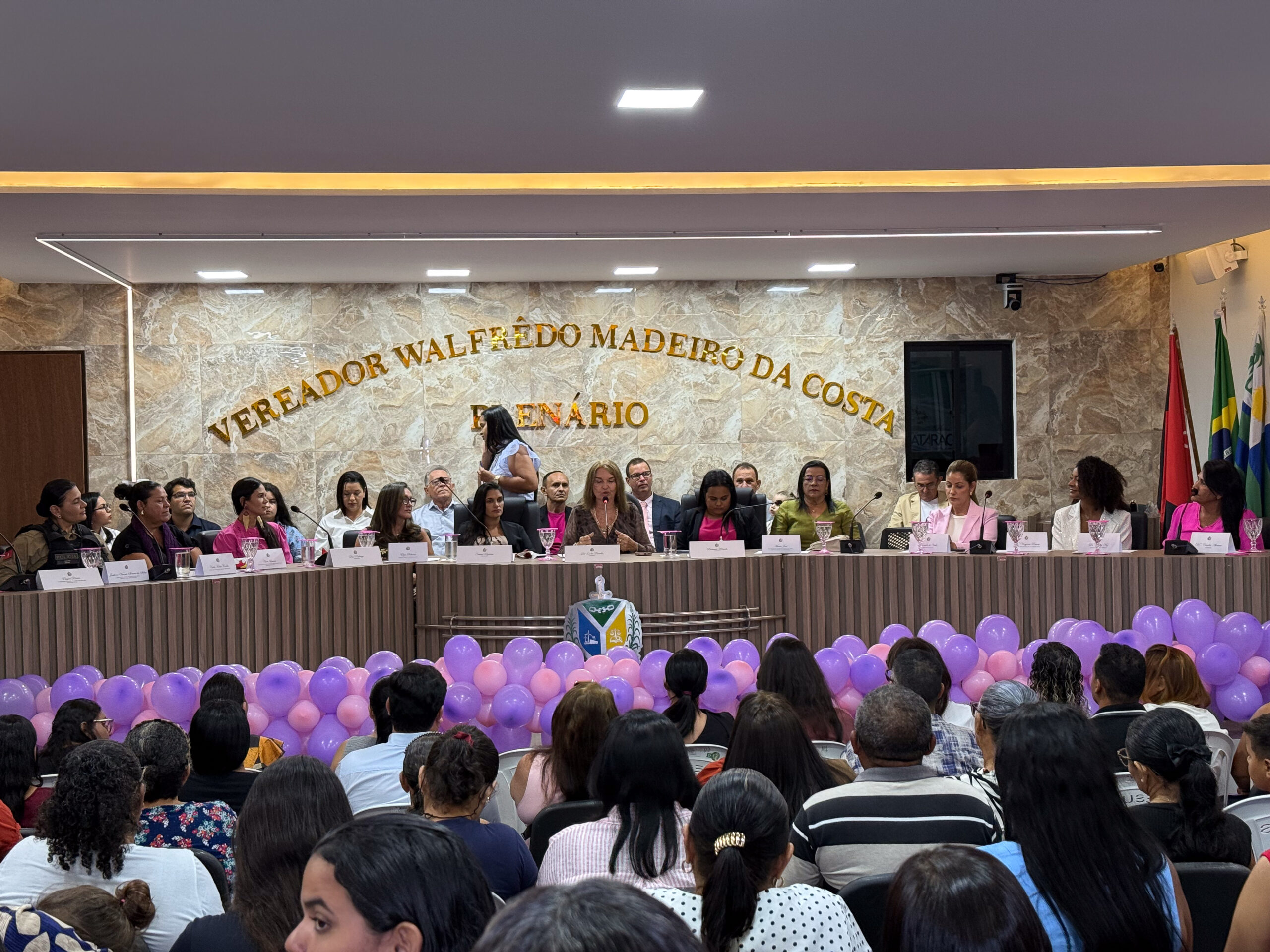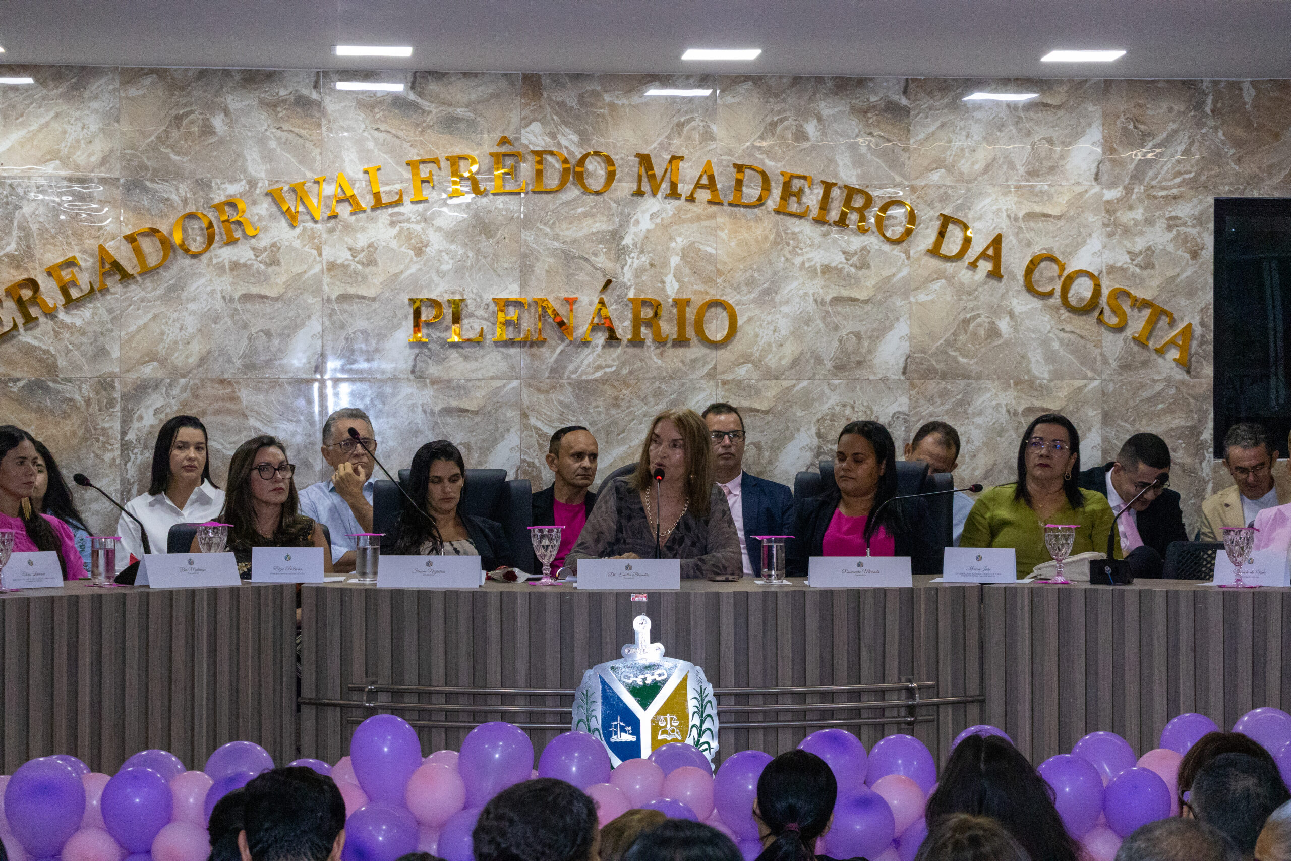 A solenidade foi presidida pela vereadora Emília Brandão, contando com a participação das vereadoras Bia Madruga, Simone Negreiros e Rose da Saúde, além de diversas personalidades que atuam na promoção dos direitos das mulheres e no incentivo à participação feminina nos espaços de poder e decisão.