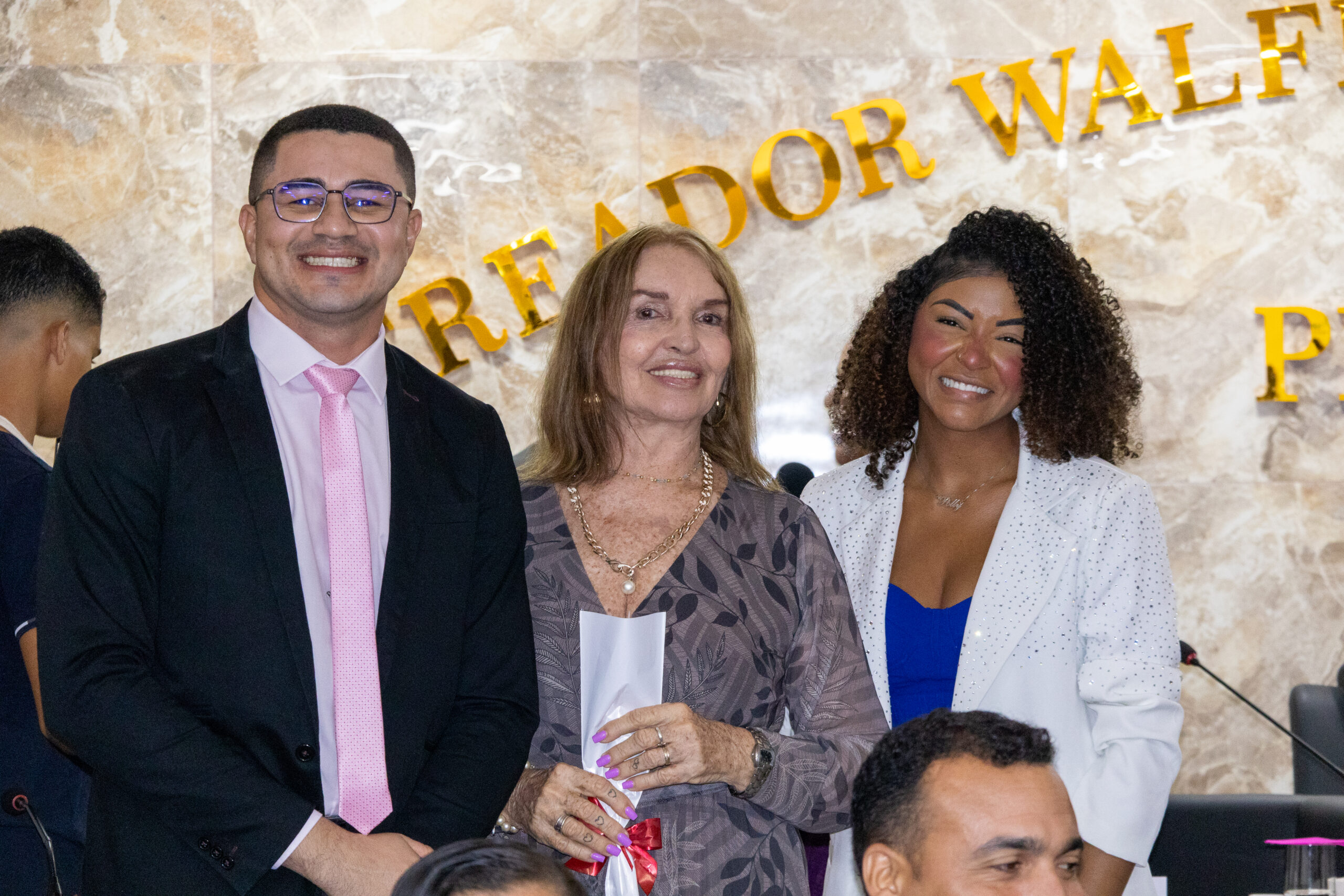A sessão contou ainda com a presença do presidente da Câmara Municipal, vereador Fernando Moura, dos vereadores Alexandre Bessa, João Bessa, Josivan Vidal e Adriano Cardoso, bem como do ex-prefeito Olympio Alencar e de secretários municipais.